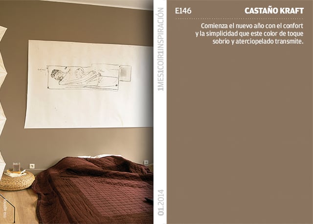 Empezamos el año con el Castaño Kraft (E146) un color confortable que nos da un toque de sobriedad y calidez al hogar. Su tono aterciopelado es ideal para combinarlo con