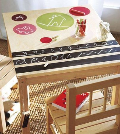 Convierte una mesa en una divertida pieza de decoración infantil y en un juego para tus hijos. Píntala con pintura efecto pizarra y deja por fin que… escriban en la mesa!!!!
