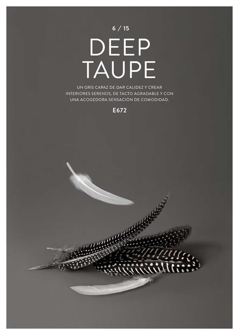 El gris Deep Taupe (E672) es cálido y profundo. Crea interiores serenos y confortables. Los grises son muy decorativos y combinables con todo tipo de estilos.